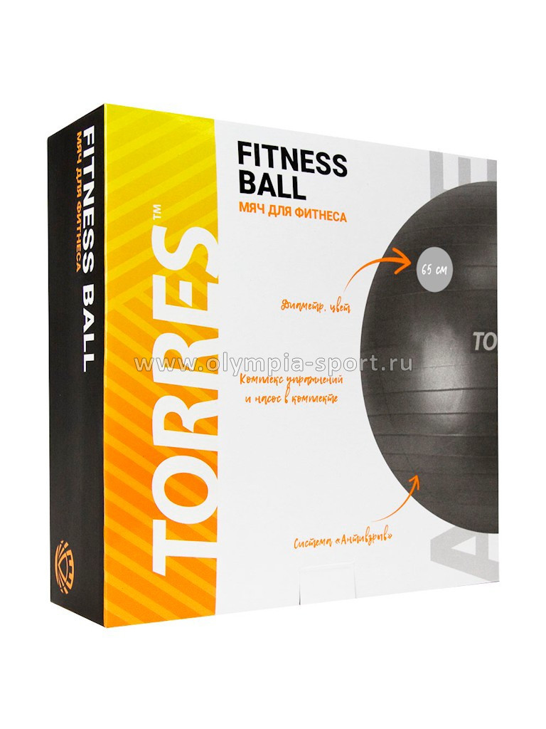 Мяч гимнастический TORRES 65см, эласт.ПВХ, с защит. от взрыва, с насосом