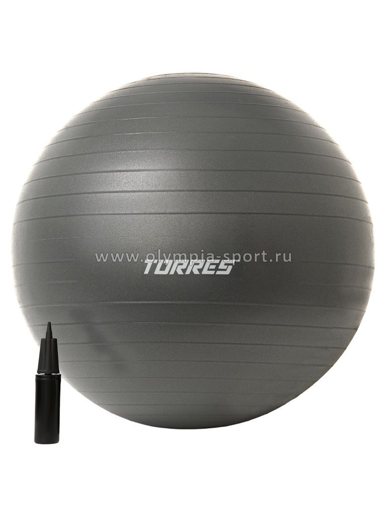 Мяч гимнастический TORRES 75см, эласт.ПВХ, с защит. от взрыва, с насосом, серый